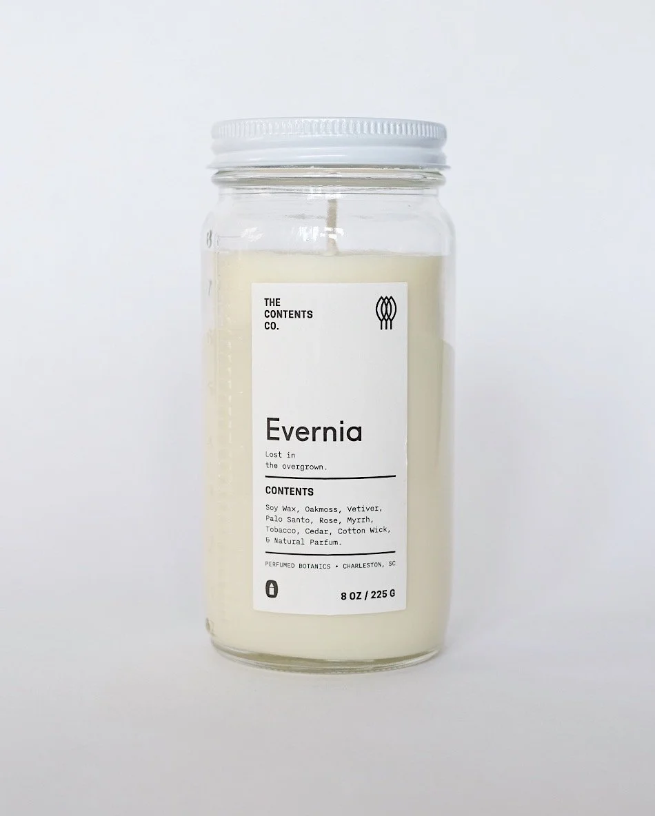 Soy wax, Oakmoss, Vetiver, Palo Santo, Rose, Myrrh, Tobacco, Cedar, Cotton wick, and other Natural Oils, Absolutes, and Extracts (Natural Parfum)